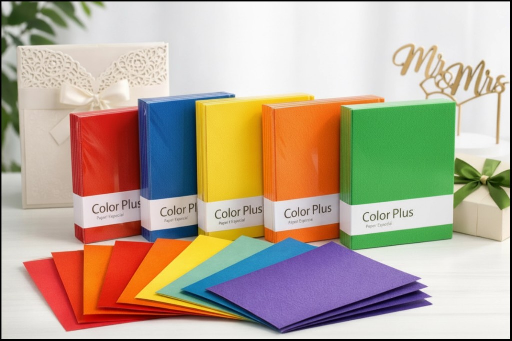 • Colorido na Massa: O grande diferencial do Colorplus é que ele é tingido em sua totalidade (na massa) antes de ser prensado, não apenas na superfície. Isso significa que, ao cortar ou rasgar o papel, a borda tem a mesma cor da superfície, evitando o desagradável "miolo branco" de papéis tingidos superficialmente.